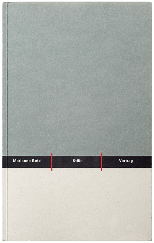 Marianne Betz, Stille – hörbares und sichtbares Moment in der Musik. Vortrag an der Hochschule für Grafik und Buchkunst Leipzig. Herausgegeben von Julia Blume und Günter Karl Bose. 40 Seiten mit 7 Abbildungen [Noten- und Textbeispiele von Erwin Schulhoff, Christian Morgenstern, Man Ray, Alphonse Allais, John Cage, Earle Brown; Pausenzeichen des 13. bis 16. Jahrhunderts ], Broschur, Fadenheftung. 14,5 x 23,3 cm. Institut für Buchkunst, Leipzig 2000. 8,00 Euro