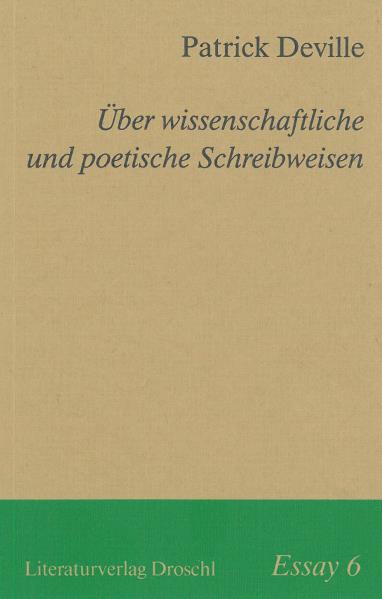 Patrick Deville, Über wissenschaftliche und poetische Schreibweisen. Essay. Aus dem Französischen übersetzt von Jürgen Ritte. 20 Seiten, Broschur. Literaturverlag Droschl, Graz 1992. 6,00 Euro (= Reihe Essay Bd. 6)