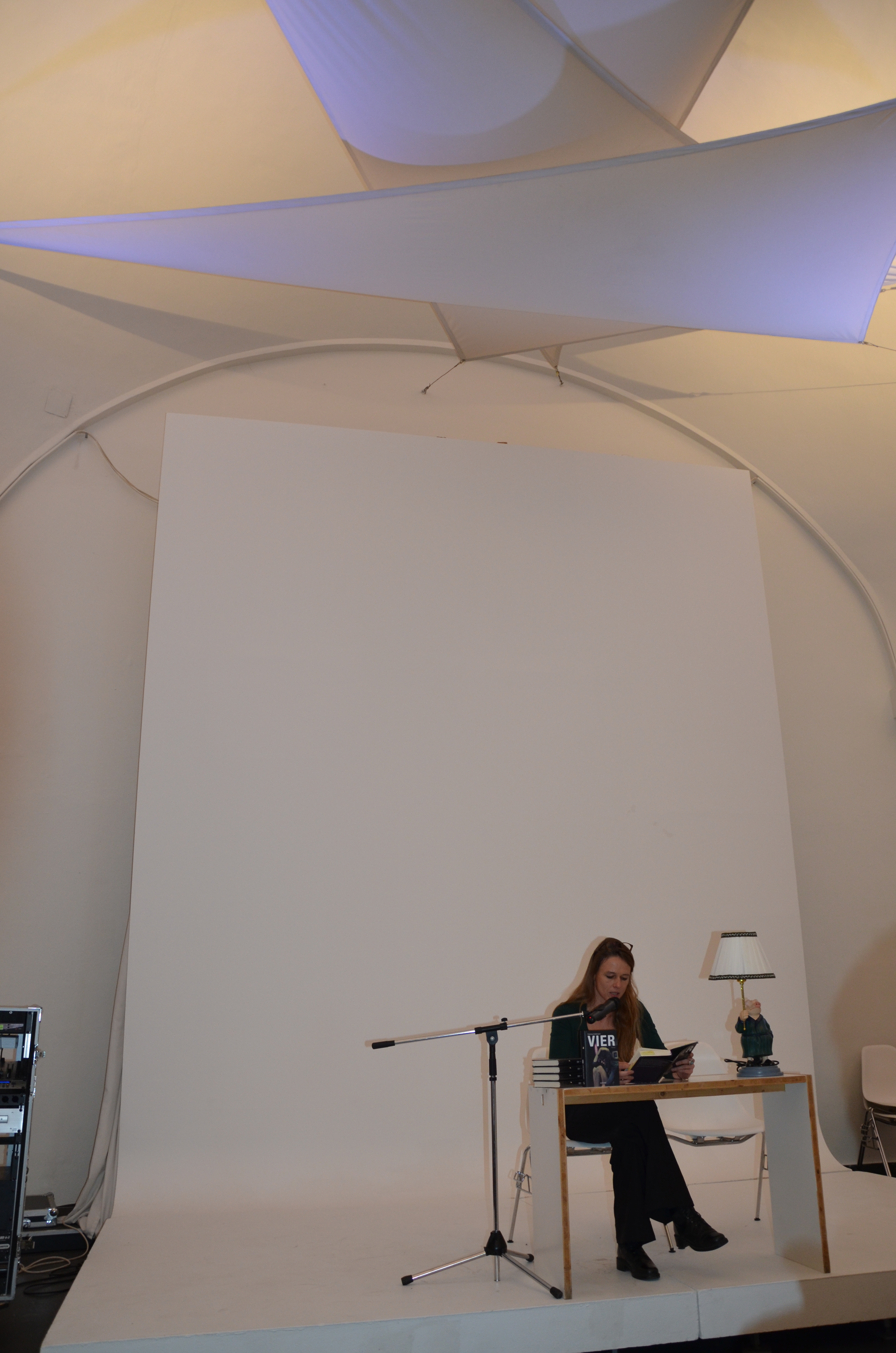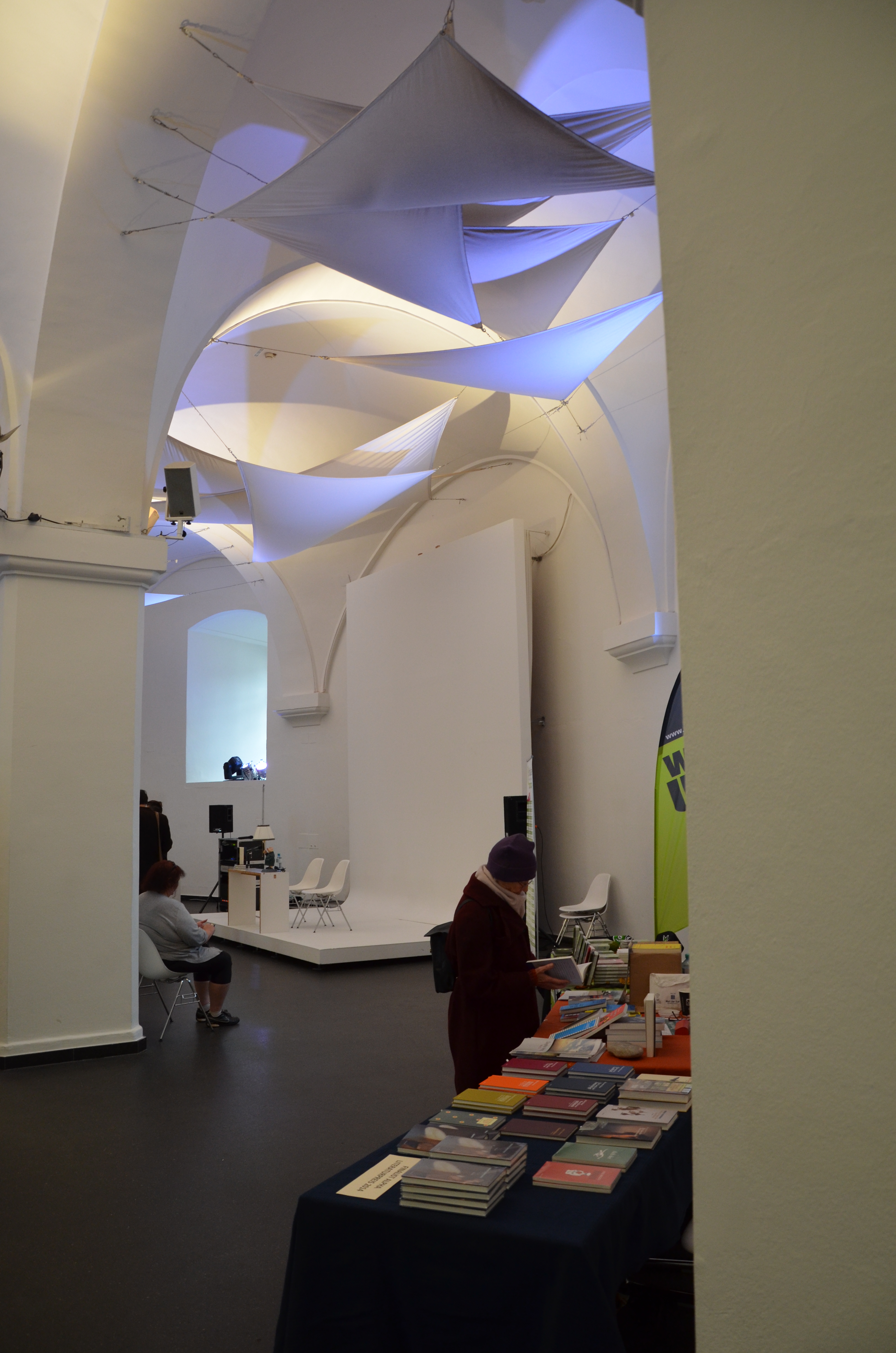 Der Publikumszuspruch war erfreulich, den Verlagsmenschen gegenüber gab man sich zutraulich und interessiert, die sieht man hinter den Büchern ja sonst nicht; man kam ohne und ging mit Erstandenem im Gepäck. Zu wandeln galt es gerade einmal zwischen zwei Markthallen, in der gleißend-weißen und kühleren Ovalhalle fand man die Weite und Luft, die in der wärmeren und engeren Arena 21 fehlte. Die Kunstbücher hatten sich genau zwischen beiden Stätten platziert. Ein spezifischer Sound stellte sich in beiden Hallen ganz von allein ein, Textfetzen von Lesungen auf den offenen Bühnen vermischten sich mit dem Stimmengewirr der Anwesenden.