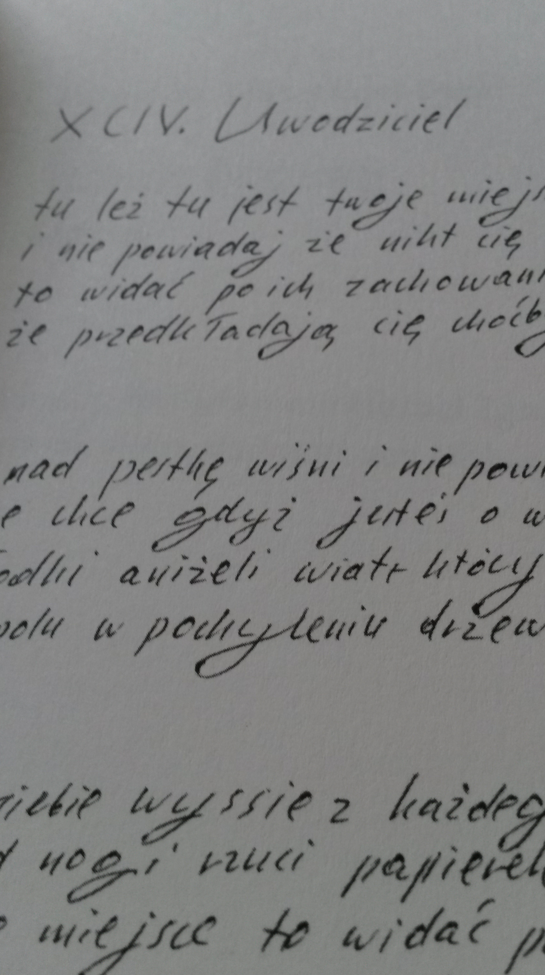 Von der ersten bis zur letzten Buchseite erstaunt die Modellhaftigkeit der Form, ihre optische Homogenität, jedes Gedicht besteht aus gerade einmal zwei bis vier Strophen mit jeweils vier Versen oftmals gleicher Länge, von den Gedichtzyklen abgesehen. Darin insistiert eine süchtige Stimme auf ganz bestimmten Themen und Motiven, den Besuchen in „freudenhäusern“ und homosexuellen Wonnen, den lust- und leidvollen Erinnerungen an den Geliebten, den Tod, den vielen toten Angehörigen („knochen“), den zerstörten polnisch-ukrainischen Grenzlandschaften der Kindheit, der Schizophrenie der Mutter („krank im kopf“; übrigens auch Homosexualität galt im kommunistischen Polen als „Krankheit“). Besondere Anklänge in den Gedichten gibt es an die Ortlosigkeit der Menschen, Bindungsverluste oder auch an das „Getriebensein“.