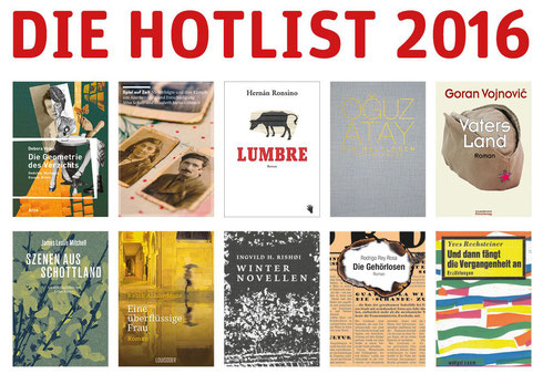 Da sind noch einmal die großartigen, spannenden, stillen, verwegenen, berührenden, einzigartigen Bücher der Hotlist und des Jahres 2016! Wir fühlen uns von den Autorinnen und Autoren reich beschenkt an Romanen, Übersetzungen, Erzählungen, Gedichten, Novellen und Reportagen.