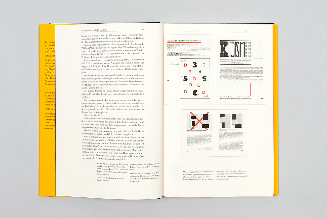 Ich hab ein paar Bücher über Buchgestaltung gelesen, Tschichold ist der strenge Klassiker, den empfehle ich. So bin ich auf die Broschurbändchen von Jost Hochuli gestoßen, Bücher machen heißt sein wohl berühmtestes. Jost Hochuli ist selbst ein Büchermacher und -sammler, er liest die Bücher aber selten. Finde ich auch einen Zugang! Er dreht die Bücher um und guckt sie sich an und besteht darauf, dass Bücher, die gut gestaltet sind, leistbar sein sollen und gebraucht werden können. Bruno Munari könnte man auch dazu nennen.