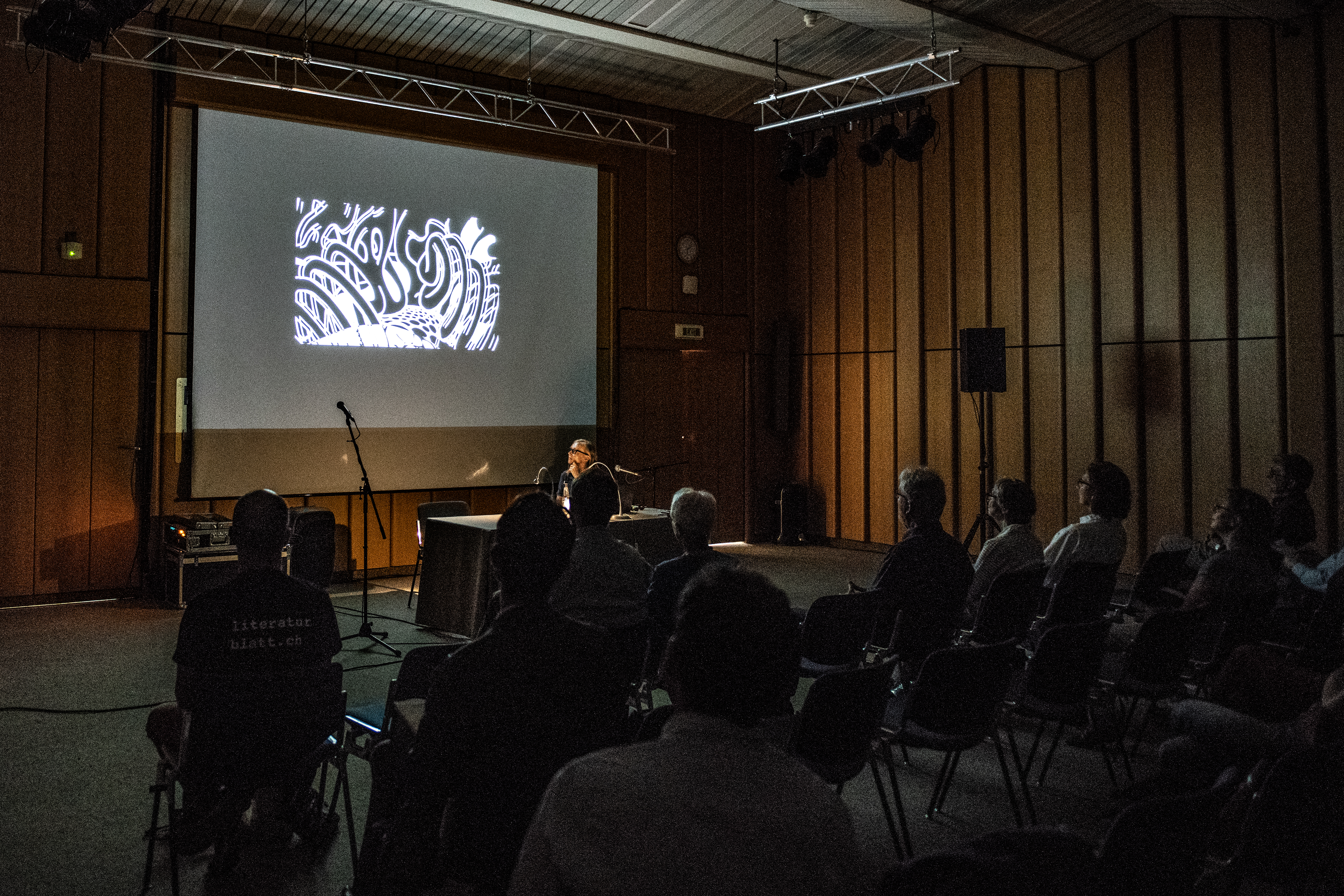 Nicht in der Reihe, aber ebenfalls bei Matthes & Seitz ist das Buch «Strategien der Wirtsfindung» von Brigitta Falkner erschienen, für das der Verlag 2017 mit dem Preis der Hotlist ausgezeichnet wurde. Die Autorin lege ein betörend schönes Buch vor, das uns krabblige Stunden beschere, schreiben die Programmverantwortlichen des Festivals und fahren fort: «… widmet es sich doch all den kleinen Parasiten, die um uns nisten und walten». Brigitta Falkner bewegt sich zwischen bildender Kunst, Buchkunst und Literatur, sie verbindet Lyrik, Buchgestaltung und Graphic Novel auf kunstvolle Weise. Ihre Präsentation wird zu einer Performance – der Film öffnet noch eine weitere Dimension. Auch diese Veranstaltung gehörte zu den Höhepunkten des diesjährigen Internationalen Literaturfestivals Leukerbad.