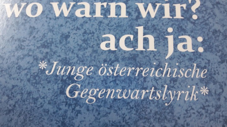 Wo warn wir? ach ja: Junge österreichische Gegenwartslyrik heißt die verdienstvolle Anthologie, die Robert Prosser und Christoph Szalay im Innsbrucker Limbus Verlag herausgegeben haben. Der Band ist nicht nur der Beweis dafür, wie lebendig die Kunstform Lyrik auch im 21. Jahrhundert noch ist. Er zeigt auch, wo genau in Österreich Lyrik entsteht und Öffentlichkeit bekommt.
