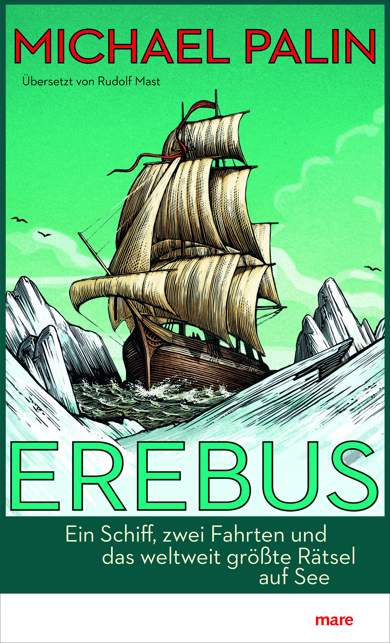 „Don’t judge a book by its cover“, heißt es so schön im Englischen. Damit sind zwar Menschen und keine Bücher gemeint, aber man kann diese Metapher auch wörtlich nehmen. Beim Blick auf das Cover von Michael Palins Erebus, auf dem zur Freude des Verlags schnell der Aufkleber „Spiegel Bestseller“ angebracht werden konnte, fühlt man sich an ein Jugendbuch aus den 1970er-Jahren erinnert. Der mareverlag hat das Covermotiv von der englischen, 2019 bei Penguin erschienenen Originalausgabe adaptiert, das klassisch aussieht, weil die Proportionen von Bildausschnitt, Autorenname und Titel stimmen.