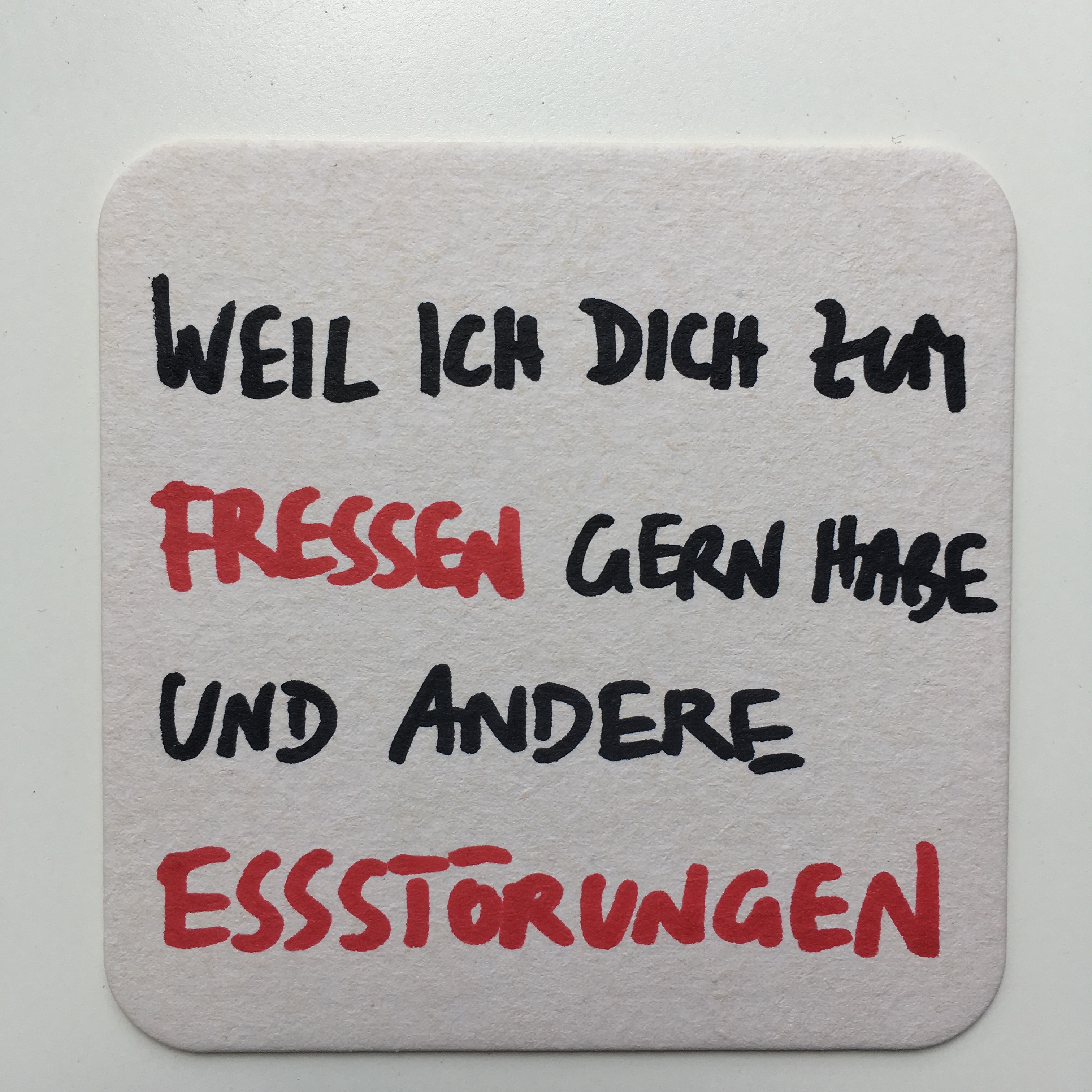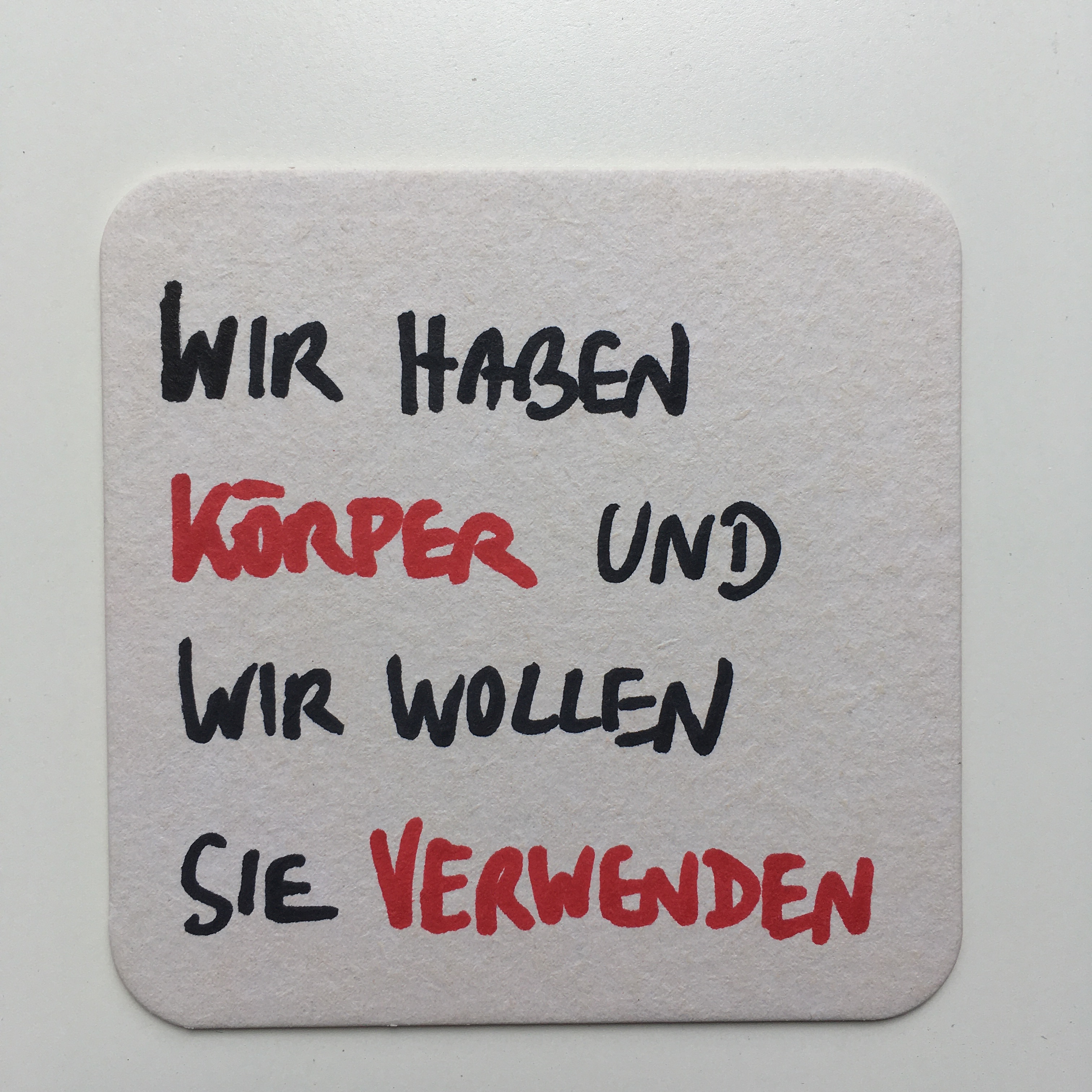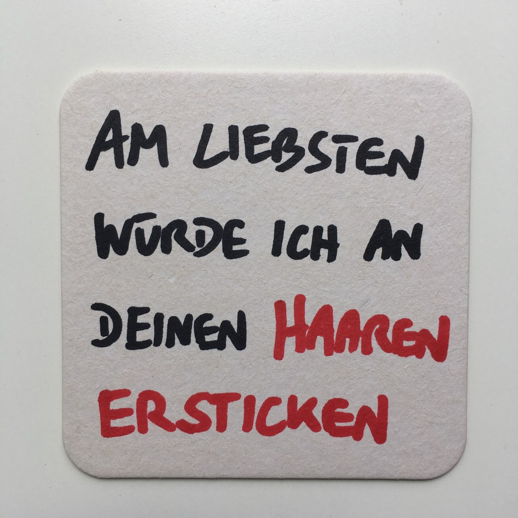 Wie wäre es, einen Bierdeckel einmal als etwas anderes anzusehen denn als unansehnlichen Papp-Untersetzer für Getränke, auf den im Laufe einer durchzechten Nacht die Anzahl der konsumierten Alkoholika verzeichnet werden oder ein doofer Spruch, eine Anmache, eine Telefonnummer? Bierdeckel sind gleichermaßen ephemer und singulär: Es gibt sie nur in Gasthäusern, ihre Funktion ist zumindest teilweise fragwürdig, die Kartenhäuser, die man aus ihnen baut, sind mehr als fragil, und selbst, wenn man etwas auf ihnen notiert und sie aufbewahren möchte, verliert man sie und damit auch die niedergeschriebenen Worte über kurz oder lang mit Sicherheit oder findet sie als unzählige aufgeschwemmte Papierfetzen in der Waschmaschine wieder.