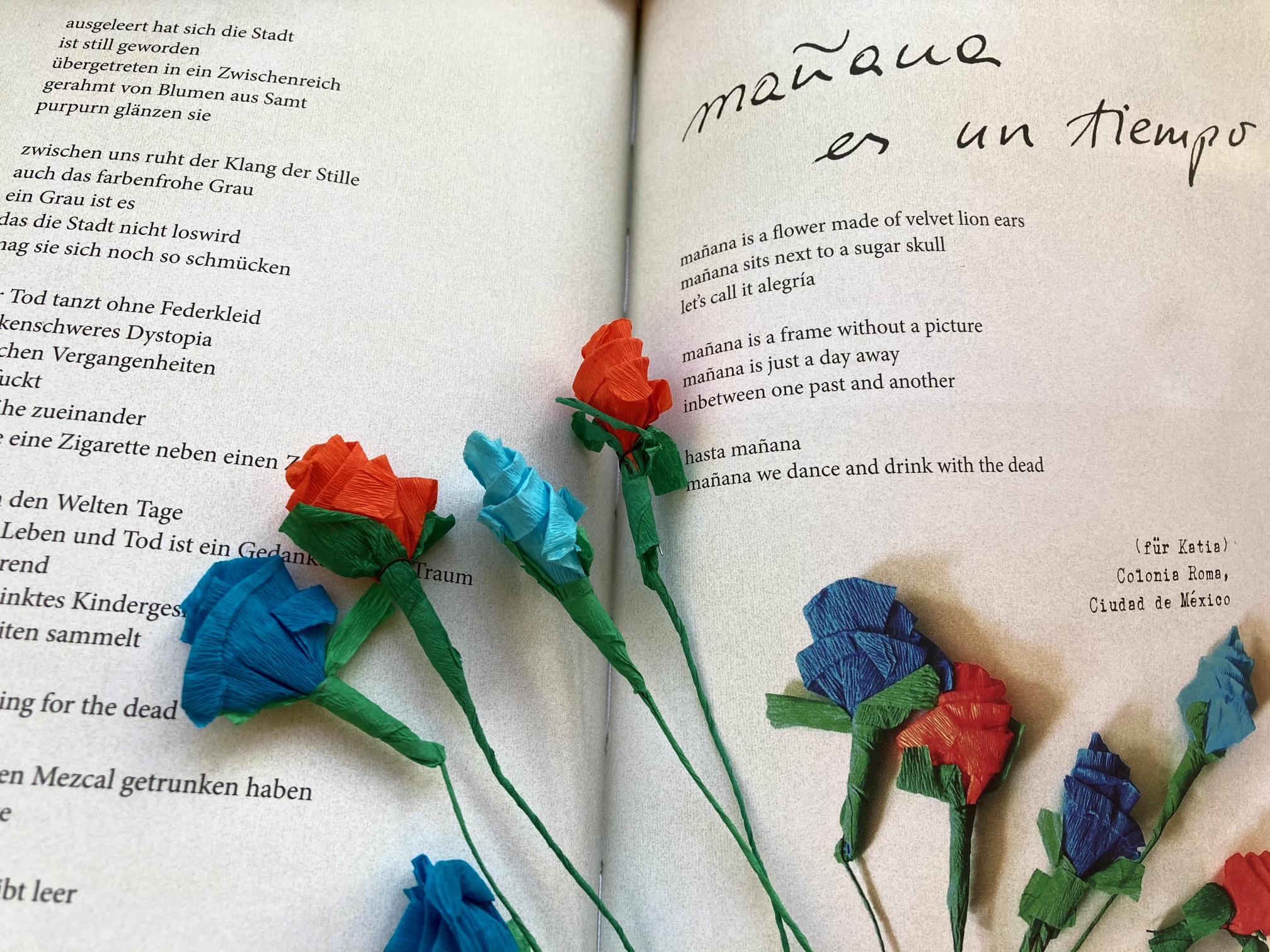 Feimer und Poor reisen im Rhythmus der Beat-Poeten von Küste zu Küste, spontan und unstet. Sie nächtigen in Motels, die Übergangsquartiere für Gestrandete geworden sind, prekäre Zonen, in denen sie eine seltsame Normalität erleben, die letztlich Ausnahmezustand bleibt. Sie lassen sich von den Menschen, denen sie begegnen, und von Landschaften, Wetter und Jahreszeiten einnehmen. Sie tauchen in die Popkultur ein, brausen über die Route 66, entlang amerikanischer Mythen, lachen über Plastikaliens in Roswell, inhalieren die Betriebsamkeit New Yorks. In South Beach, Miami, wird das Szenario unbehaglich. Durch Poors fotografisches Auge sehen wir einen mit Stars und Stripes gezierten, einsamen Rettungsschwimmerturm unter einem dunklen, dicht bewölkten Himmel. Das Meer schäumt. Dazu das titelgebende Gedicht, in dem es heißt „say goodbye to light and lovers“ und „manch ort ist nichts weiter als ein Geisterschloss“. Mit diesem Text im Herzen des Buches hat die Arbeit Isabella Feimers an American apocalypse begonnen. Hier fühlt sich ihre Lyrik an wie Jazz: hitzig, sphärisch, frei, wechselnde Tempi, Deutsch und Englisch fließen ineinander – hier offenbaren sich ihre Bezüge zur Beat-Literatur. Die Worte flimmern in der Hitze Nevadas, sie tanzen in den Straßen Mexiko Citys am Tag der Toten, sie öffnen dunkle Himmel, in denen sich schon der nächste Hurrikan zusammenbraut. Stellenweise erinnert diese körperliche, alle Sinnesorgane ansprechende Lyrik an die Wucht von Pier Paolo Pasolinis Poesie, in der sich die Vergangenheit aus den Bildern der Gegenwart hebt. Isabella Feimer schafft verdichtete Szenen, aufgeladene sprachliche Bilder, in denen Fortschrittsgeist und Moderne des Landes der unbegrenzten Möglichkeiten aufblitzen und sich sukzessive mit einer komplexen, verwirrenden, polarisierten Gegenwart vermengen.