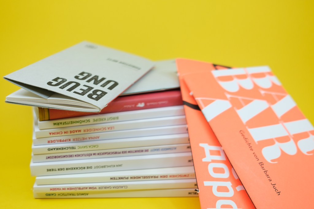 Im Herbst 2020 wurde das Verlagsprogramm um eine neue Reihe erweitert. In der Edition Zwanzig erscheinen Debüts, in Chapbooks ohne Illustration und rein typografisch in Szene gesetzt. Den Anfang machten die Bände von Alisha Gamisch und Barbara Juch. Gamisch entspinnt in Lustdorf ein imaginiertes Gespräch mit einer Grossmutter, der Dialog steht sinnbildlich für die vielen Dialoge zwischen Grosmüttern und ihren Enkelinnen. Gleichzeitig wird aber, ganz im Sinne von Christian Metz, ganz viel dokumentiert, eine russlanddeutsche Geschichte zwischen zwei Frauen, eine ist schon, die andere ist weiterhin im Werden begriffen. In Juchs Barbara dagegen sind die Bs vorherrschend; es barbariert, die Brautsträusse fliegen und die Barbaras werden noch nicht mit Kulis niedergeschrieben. Auch hier geht es um die eigene Herkunft und den damit einhergehenden vererbten Wesensansatz und darum, wann man den eigenen Namen endlich mit wasserfester Tinte niederschreiben kann.