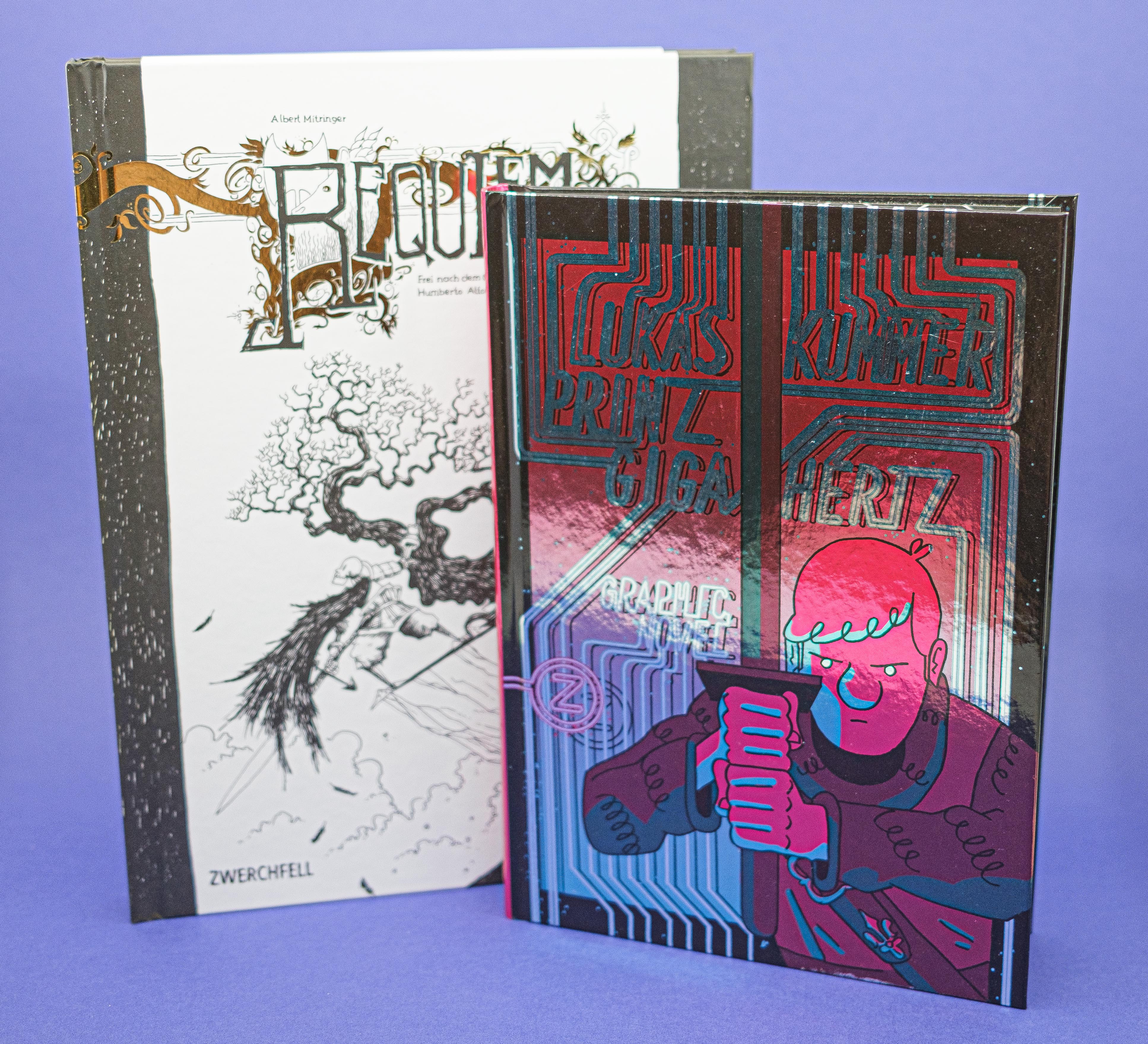 - Lukas Kummer (Autor und Zeichner): Prinz Gigahertz. High Fantasy. Stuttgart: Zwerchfell Verlag 2020. 120 Seiten, Hardcover. 18 Euro.