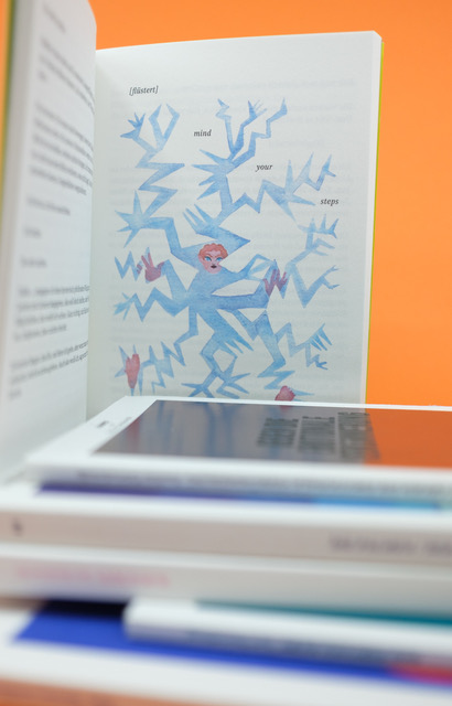 Es wird Sonntag, bis ich endlich am Stand des Verlags eintreffe: 15 Uhr und alle sind müde, ganz besonders ich. Ich treffe da auf Katharina Holzmann und David Rabolt, zwei Drittel des Trios. Sascha Ehlert, der dritte Verleger, hat gerade eine wohlverdiente Pause. Katharina und David scheint es ähnlich zu gehen wie mir, die Tage auf der Messe haben an den Kräften gezehrt. Wir kommen ins Gespräch und reden dann lustigerweise (mir erscheint es lustig, keine Ahnung, ob es wirklich lustig ist) lange über ein Buch, das gar nicht in ihrem Verlag erschienen ist: Mostro von Leonhard Hieronymi und Christian Metzler (starfruit publications). Ein selten dummes (gerade deswegen grossartiges) Buch, in dem die beiden durch ganz Deutschland fahren und Pinocchio-Eisbecher bestellen und fotografieren.