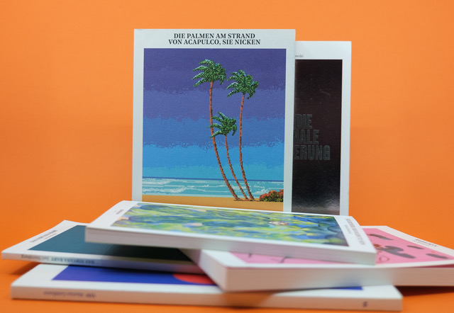 Es wird Sonntag, bis ich endlich am Stand des Verlags eintreffe: 15 Uhr und alle sind müde, ganz besonders ich. Ich treffe da auf Katharina Holzmann und David Rabolt, zwei Drittel des Trios. Sascha Ehlert, der dritte Verleger, hat gerade eine wohlverdiente Pause. Katharina und David scheint es ähnlich zu gehen wie mir, die Tage auf der Messe haben an den Kräften gezehrt. Wir kommen ins Gespräch und reden dann lustigerweise (mir erscheint es lustig, keine Ahnung, ob es wirklich lustig ist) lange über ein Buch, das gar nicht in ihrem Verlag erschienen ist: Mostro von Leonhard Hieronymi und Christian Metzler (starfruit publications). Ein selten dummes (gerade deswegen grossartiges) Buch, in dem die beiden durch ganz Deutschland fahren und Pinocchio-Eisbecher bestellen und fotografieren.