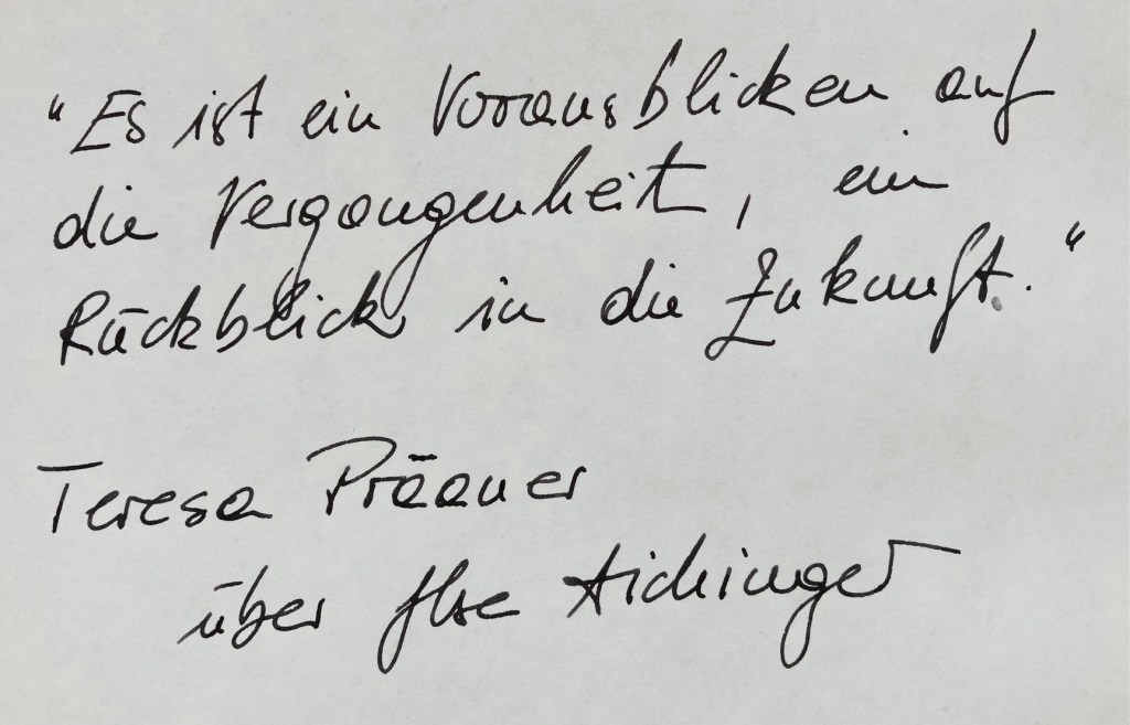 Persönlich, so wie Aichinger stets geschrieben hat, dem zarten Erinnern verhaftet und begleitet von den Texten der Schriftstellerin – unter anderem einem Auszug aus Aichingers Roman Die größere Hoffnung (1948) – zeigt sich Präauers Begegnung. Sie verknüpft, führt aus, fragt nach und würdigt die bedeutende Poetik der großen Schriftstellerin.