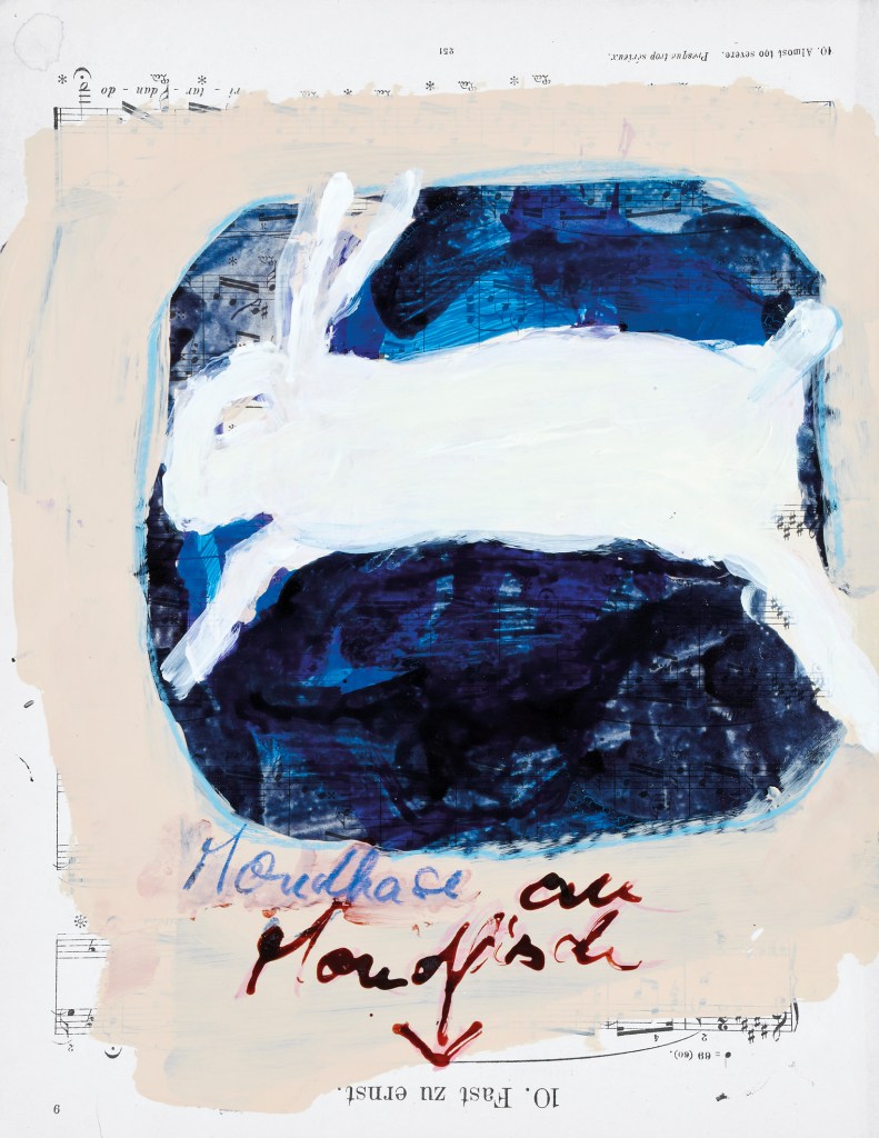 Die Künstlerin verflicht in dem Buch Musik, Bilder und lyrische Passagen zu einer synästhetischen Collage. Dabei dichtet sie selbst, zitiert fragmentarisch – einzelne Sätze und Wörter – aus dem leidenschaftlichen Briefwechsel des Liebespaares Clara Wieck und Robert Schumann und übermalt dessen Partitur zu den „Kinderszenen und anderen Klavierstücken“ mit ausdrucksstarken Tuschbildern, die vornehmlich in starken Farben gehalten sind: Purpur, Violett, Schwarz, düster aufgetürmte Blauarten und hie und da ein knalliges Rot dominieren die im besten Sinne des Wortes eigenartigen Darstellungen, die an Traumsequenzen, Fabelwesen und auch kindliche Erinnerungsfragmente denken lassen, aus den Tiefen des Unterbewusstseins aufgestiegen, vielleicht aus einer Mondfischwelt, und die nun im fahlen Mondhasenlicht der bewussten Wahrnehmung leuchten.