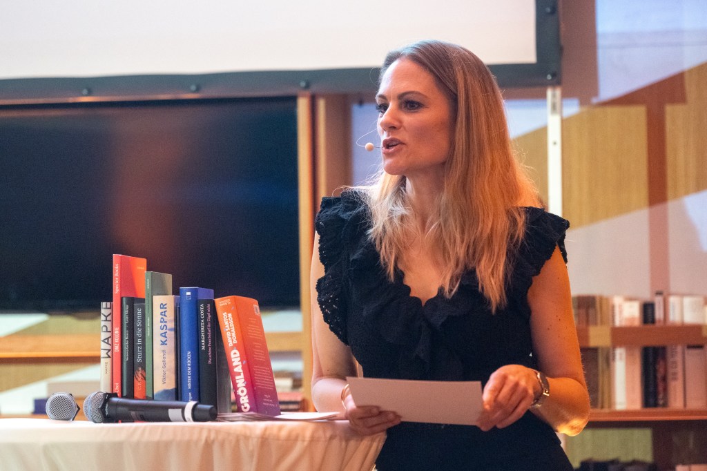 Anna Engel (hr2-kultur) stellte am Freitag die zehn Bücher der Hotlist 2023 vor.